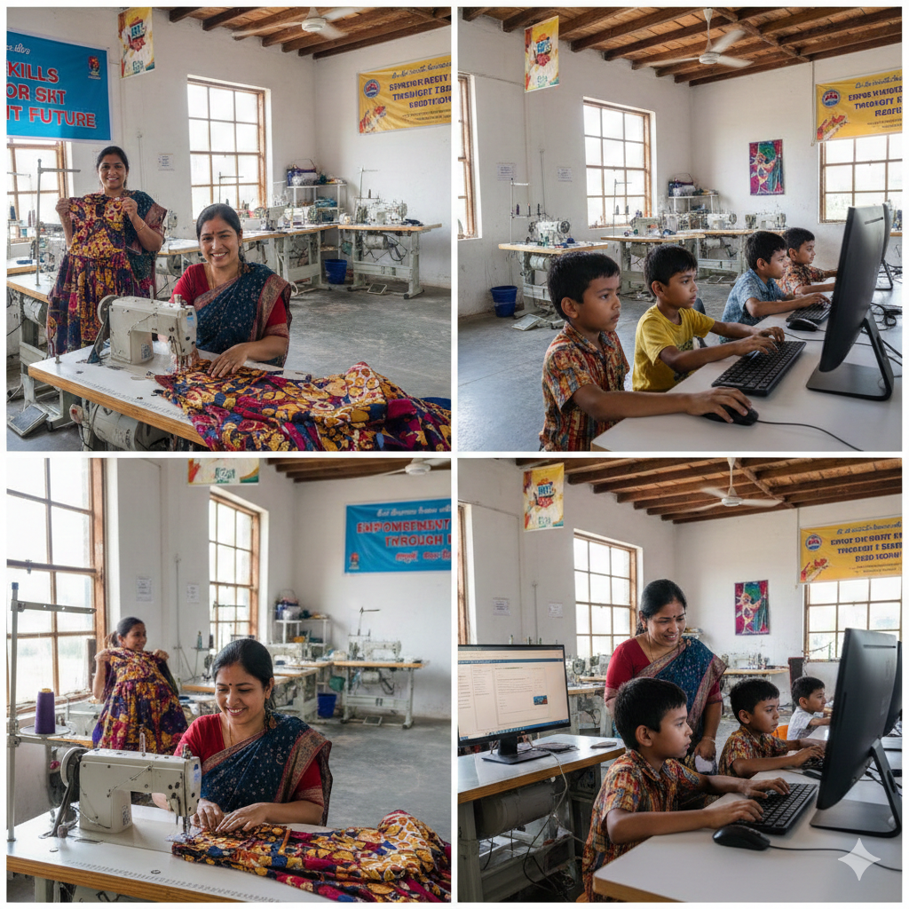 12. निराश्रित, विकलांग, विधवा, असहाय, गरीबी रेखा से नीचे जीवन यापन करने वाले जरूरत मंदों के कल्याण सिलाई कढ़ाई, हस्तशिल्प, बुनाई, टायपिंग, कम्प्यूटर प्रशिक्ष, ब्यूटी पार्लर, पेन्टिंग आदि का शिक्षण एवं प्रशिक्षण देना जिससे उन्हें रोजगार की प्राप्ति हो सके तथा उनके पोषण आहार की व्यवस्था करना तथा उनके कल्याण हेतु अन्य योजनायें क्रियान्वित करना ।